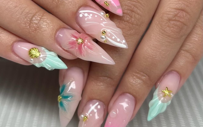 Exempelvis. Ombre/ fade, French reverse. Eller om du vill blanda olika designs tex franskt med chrome eller varannan glitter och varannan helfärg