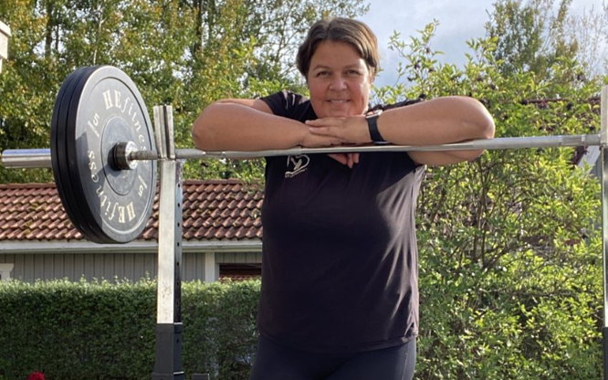Vi tränar med vikter, gummiband, TRX-band och egen kroppsvikt.