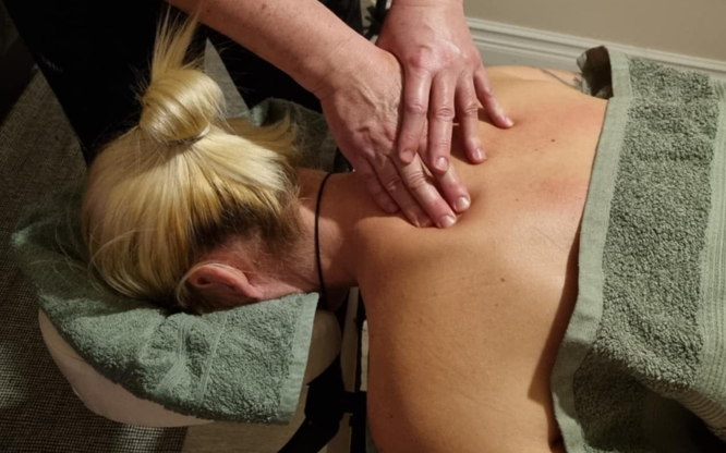 Jag masserar rygg,axla, nacke, ben och armar.