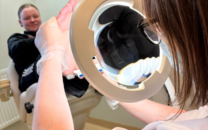Fixa Foten har öppet på eftermiddagen och helger, jag jobbar på dagtid som medicinsk fotterapeut i Charlottenberg på Eda Vårdcentral. Min specialitet är bland annat, liktorn, kartnaglar, förhårdnader och nageltrång.  Jag är i lokalen endast då jag har kunder.  Säljer fotsalva som är svampförebyggande.