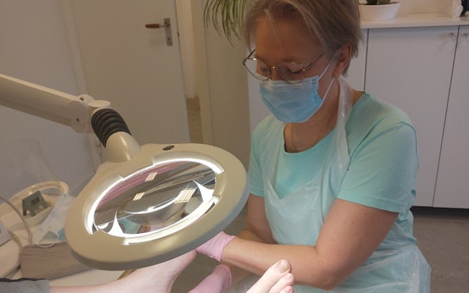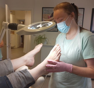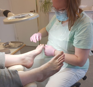 Fotbad, nagelvård, borttag av förhårdnad, ev. vårtor, hälsprickor, liktornar, tjocka naglar. Avslutas med massage (lite problem längre massage även underbensmassage, mycket problem kortare massage bara fotmassage. Säg gärna till om ni prioriterar underbensmassage.