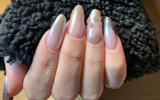 T.ex chrome, fransk, french fade eller någon enkel design på någon nagel