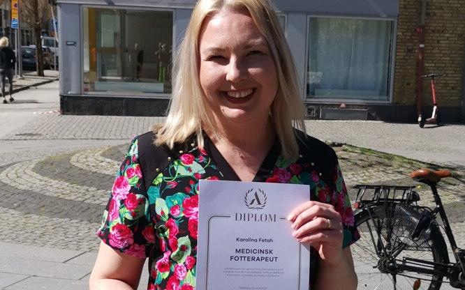 Jag heter Karolina och är medicinsk fotterapeut, utbildad vid Axelsons gymnastiska institut i Göteborg.