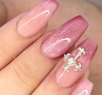 Förlängning av naglarna där vi använder en lätt rosa gelé eller lackar naglarna i en färg.