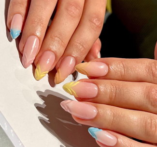 Klassisk fransk manikyr eller fransk ombre(fadead fransk). Minst 8 naglar kvar (annars räknas det som nytt set). Vid lagning av nagel tillkommer 50 kr(en lagning).