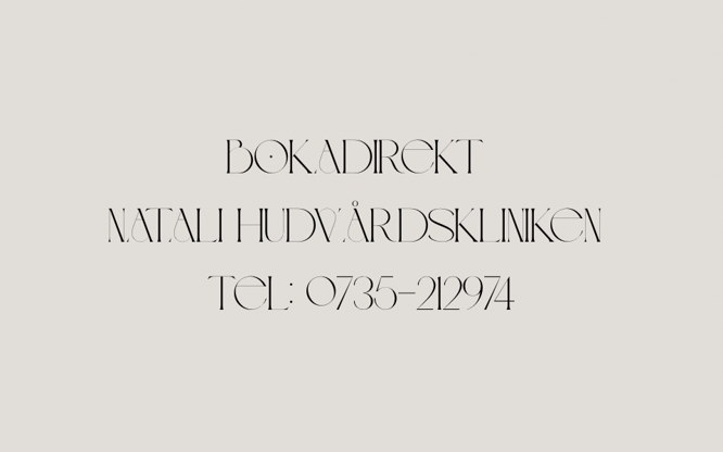 Välkommen till ny adress – Natalikliniken Nu finns Natalie Nordic Skincare & Health – Saga Skincare hos Reiduns Salong, Storgatan 52A i Vasastan, Skövde. Hud- & hälsomottagning med fokus på avancerad hudvård, friskvård och beauty i en lugn nordisk miljö. Resultatinriktade behandlingar och professionella produkter från bl.a. Circadia och NeoStrata. Vi erbjuder: Ansiktsbehandlingar & avancerad hudvård Massage, koppning & lymfdränage Kropps- & detoxbehandlingar Kombobehandlingar & friskvård Fransar, bryn & make up Friskvård via Epassi & Benify. Betalning: Swish, kort, faktura eller presentkort. Storgatan 52A, Vasastan Skövde Boka: bokadirekt.se | www.natalikliniken.n.nu Varmt välkommen Behandlingar vi erbjuder: Ansiktsbehandlingar – klassiska, glow, anti-redness, anti-aging Massage & koppning – helkropp, lymfdränage, hot stone Kombobehandlingar- för helhetsupplevelse, total avslappning Kropp & detox – Phytomer, havskurer, toning Avancerad hudvård – kemisk peeling, microdermabrasion Hälsa & träning – Pilates, hudhälsoanalys. Fransar & bryn, lash lift, make up Betalning: Swish, kontanter, faktura FöretagsSwish: 123 443 14 17 Bankgiro: 5698-5849 Friskvård via Epassi & Benify Presentkort Storgatan 52 i Vasastan i Skövde Boka online: bokadirekt.se- www.natalikliniken.n.nu Med kunskaper inom hudteori och kemi förstår jag ingredienserna på djupet och hur de bäst jobbar med din hudbarriär. Utöver hudvård har jag kompetens inom epilering, vaxning och spabehandlingar, vilket gör att jag kan erbjuda en komplett helhetslösning för din skönhet. Passionerad hudvård: Jag älskar hantverket i ansiktsbehandlingar. Det är i mötet mellan kliniska resultat och den personliga upplevelsen som de bästa resultaten skapas. Välkommen till en miljö där din huds hälsa står i centrum, guidat av en genuin kärlek till yrket. Varmt välkommen! N
