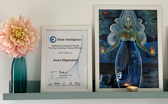 För dig om vill köpa 3 tillfällen med 60 min Kraniosakralterapi erbjuds du ett paketpris: 2160 kr för tre tillfällen på 60 min. = 720kr istället för 750kr/tillfälle. Giltigt i 6 månader från köp. Första besöket görs betalning för alla tre. Biodynamisk kraniosakralterapi är en djupgående och varsam metod som kan hjälpa dig att hitta balans och harmoni, både fysiskt och emotionellt. Behandlingen stödjer kroppens naturliga läkningsförmåga och kan vara till hjälp för att lindra spänningar, stress och oro, samt främja en känsla av inre lugn och närvaro. Det är en terapiform som kan vara värdefull för personer som upplever: *Fysiska spänningar eller stelhet, som nack- och ryggsmärtor *Huvudvärk eller migrän *Stress och utmattning *Ångest eller känslomässig obalans *Sömnproblem eller insomningssvårigheter *Muskelspänningar eller muskelvärk *För att stödja kroppens återhämtning efter trauman eller fysiska skador *Stöd för att stärka självkänsla och känslomässig välmående. Eftersom varje kropp och varje behandling är unik, kan effekterna variera. Men många upplever en ökad känsla av lugn, lätthet och större närvaro i sin kropp efter behandlingen. Det viktigaste är att behandlingen inte handlar om att forcera eller korrigera, utan att ge kroppen utrymme att själv hitta sin väg till läkning, när den är redo. En välgörande behandling från 8 år och livet ut och i livets alla skeden. Gravida från v 13 inte för att det är skadligt tidigare, utan för att det aldrig ska finnas några tvivel. Varma hälsningar Anna & hjärtligt välkommen att att boka din stund. *Godkänt som friskvård. Men kan inte köpas genom Benify & Epassi då det här redan är rabatterat. Jag är certifierad medlem i Kraniosakrala Terapeutförbundet, utbildad genom Body Intelligence.