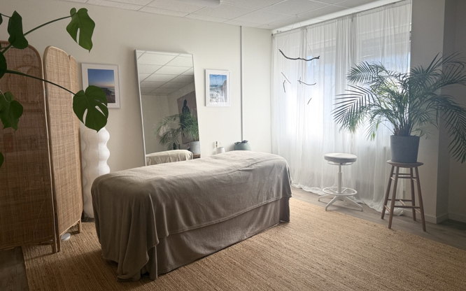 Massage hos mig handlar inte bara om muskler – det är en upplevelse som guidar dig tillbaka till kroppen, till en plats av stillhet där du kan lyssna på dig själv och börja släppa det som håller dig tillbaka. Kroppen bär våra erfarenheter och berättelser, och genom beröring kan vi öppna en dialog med det som ligger under ytan. I djup avslappning uppstår ett tillstånd bortom prestation och tanke – en plats där själ och kropp möts. Jag kombinerar olika tekniker och terapiformer: djupgående deep tissue och klassisk svensk massage för att lösa upp spänningar och muskelknutor, lomi lomi nui för långa flödande rörelser som skapar helhet, och osteopatiskt inspirerade metoder för att stödja cirkulation, andning och kroppens naturliga balans. Sessionen avslutas alltid med kraniell integration och en lugnande ansikts- och skalpmassage som hjälper nervsystemet att landa. Individuellt utvalda eteriska oljor förstärker avslappningen, stödjer återhämtning, förbättrar sömnen och främjar kroppens egna läkande processer. För dig som vill fördjupa processen kan sessionen kombineras med coaching eller reflektion, så att det som väcks i kroppen också får utrymme i ditt inre arbete. Varmt välkommen – till en stund för hela dig.