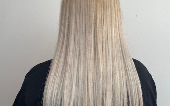 Folie slingor i utväxt (max 4 cm)nyansering vid behov inkl klippning och lätt styling.