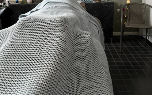 Avslappnande massage över ansikte, axlar, nacke och dekolletage.