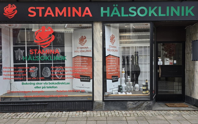 Här på kliniken utför vi våra massagebehandlingar. Vi har även ett utbud av träningskläder & kosttillskott.