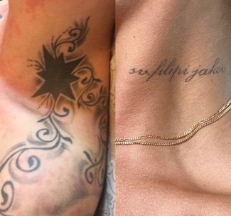 Har du ångrat dig och vill ta bort din tatuering, kanske vill göra en cover up. Vi jobbar med q-switchad YAG laser för att säkrast och effektivast ta bort din tatuering. ljuspulsen är kort och intensiv så att bara tatueringspigmentet påverkas och inte ditt naturliga pigment i huden, vilket gör risken för ärr ytterst minimal.