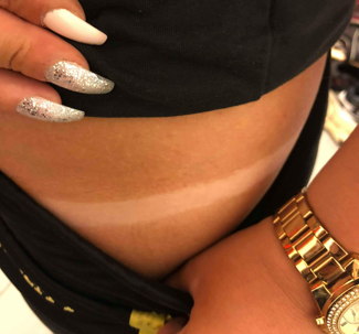 Vaxning av både bröst och mage.