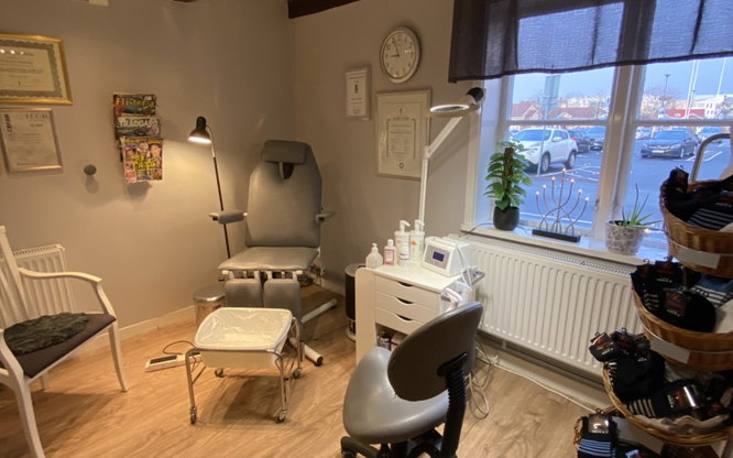 Vi är två medicinska fotterapeuter som specialiserat oss på nagelsvamp. Våra kliniker ligger i gamla kulturhus från 1700-talet. Här har vi ett gemensamt hälsocenter med flera andra terapeuter inom olika områden med fokus på kunden.